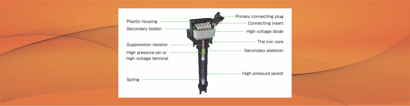■ Ignition coil is a transfer medium designed to assign the ignition sequence, and transfer the high-voltage current preassigned by ignition distributor to spark plug to ignite inside the cylinder. The numbers of ignition coils and ignition wires are up to the number of engine cylinders.