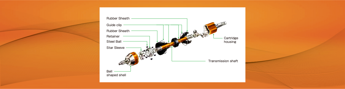 ■ Inner CV joint (Six balls): This sliding constant velocity universal joint presents different design concept. Inside it steel balls are used to deliver torque. Compared to TJ inner CV joint, it shows excellent performance and requires shorter sliding distance, solving the problem of noise. So this inner CV joint is widely used in four-wheel drive vehicles.