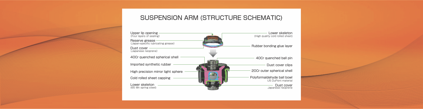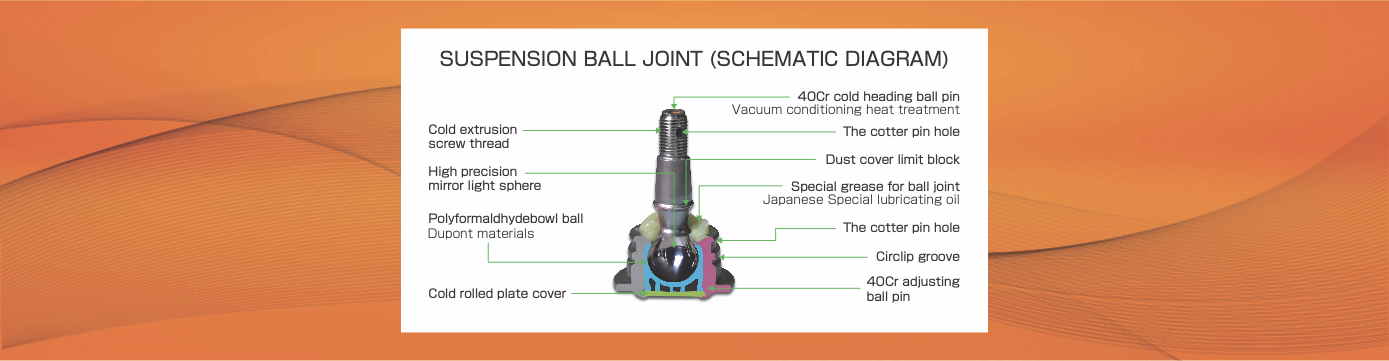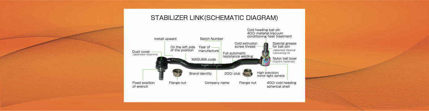 Tie Rod End、Side Rod Assy、Stabilizer Link:Suspension ball head/external rod ball head series products Ball jacket adopts 40Cr fine forging standardized and hardened, 100% defect detection and then precision machining. The balance ball head series adopts Japanese high-precision automatic welding equipment, the welding angle is accurate, the impact strength and tensile force exceed 2000 kg.F. The ball casing material adopts low carbon steel cold treatment process, unique forming, surface phosphate blackening, salt spray test for more than 72 hours. The ball stud is made of 40Cr material, the ball jacket is made of a Japanese special material, the ball head lubricant is made of Japanese special grease, the dust cover is made of Japanese Denka neoprene, the low temperature resistance reaches -45 degrees centigrade and the high temperature resistance reaches 120 degrees centigrade. Outstanding toughness and abrasion resistance.