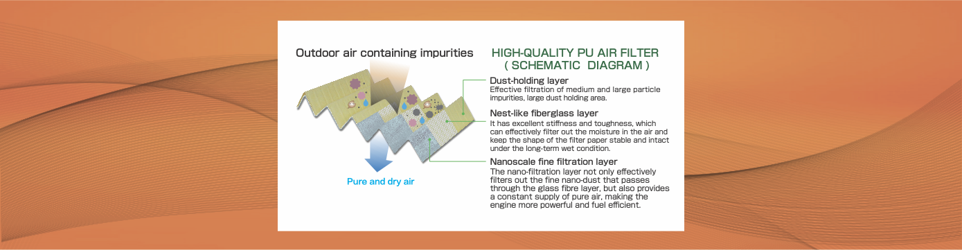 ■ The MASUMA fully-impregnated paper PU air filter, whose elements are regarded as premium products, offers the following advantages: