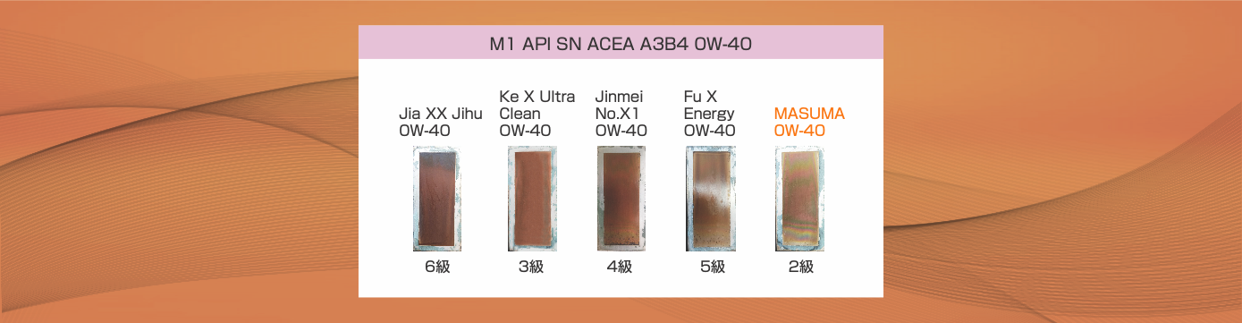 MASUMA fully synthetic engine oil program VG engine oil sludge rating 9.6, 20% higher than SN/GF-5 requirement of 8.0, also meeting SP grade requirement of 9.0, indicating Masuma engine oil has superior sludge control ability.