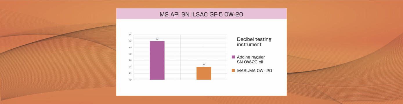 MASUMA 0W-20 decibel test result is 74, showing good noise reduction performance, mainly due to the noise reduction effect of molybdenum boron ester suspension technology.